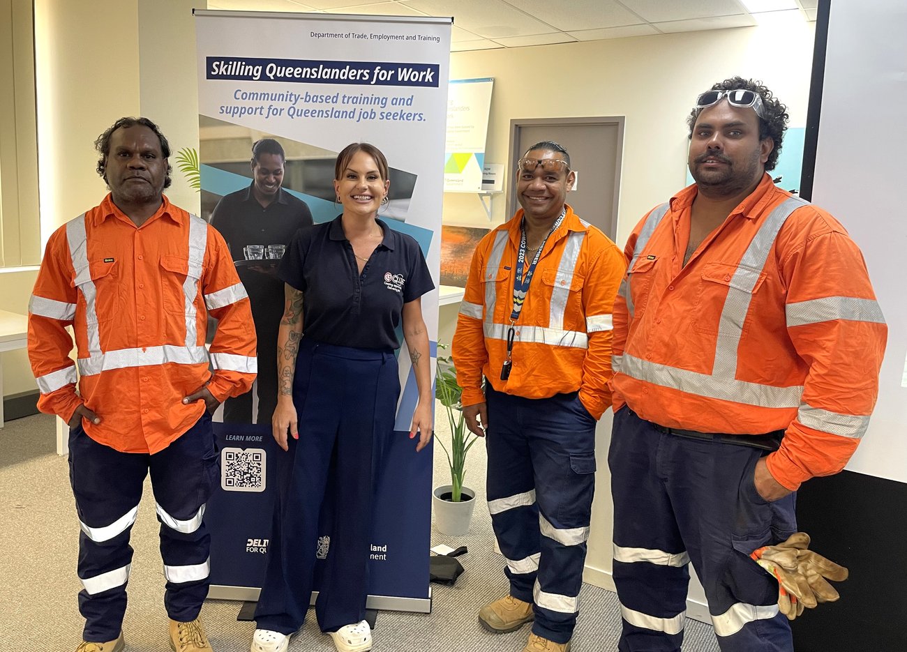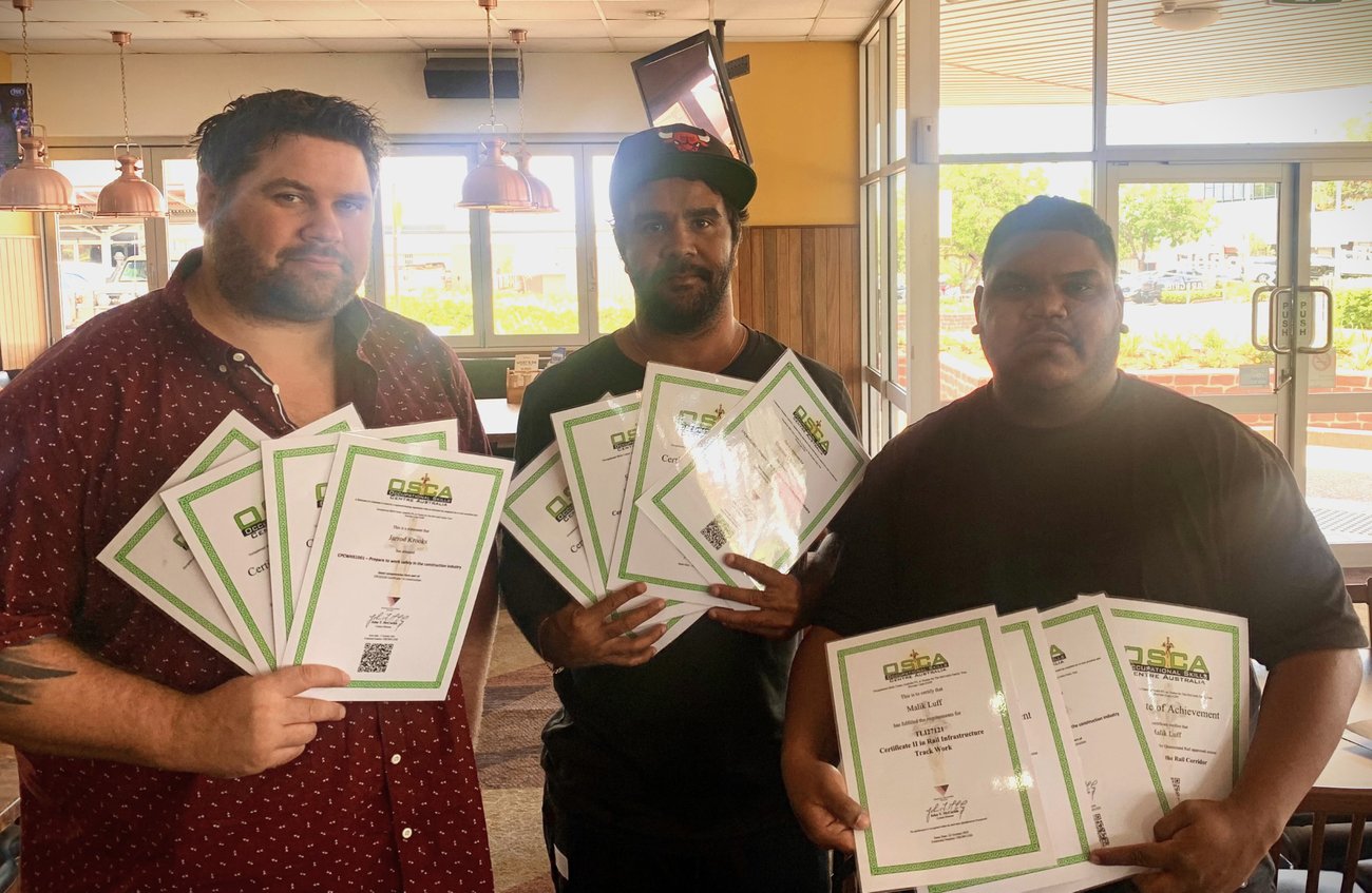 | Supporting New Skills at Mt Isa Graduates Jarrod Krooks, Shamus Cummins and Malik Luff celebrating their achievement for Energy Skills Queensland in Mt Isa.